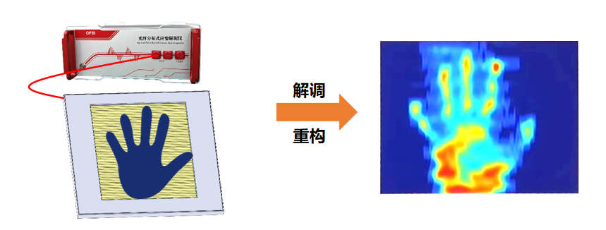 本案例中,使用OFDS-H光纤分布式传感解调仪,探测光纤均匀铺设的温度感应板。应变数据的传感分辨率达到6mm,温度精度达到±0.1℃。通过光纤的二维布放,可实现对二维温度、应力的传感与反演。